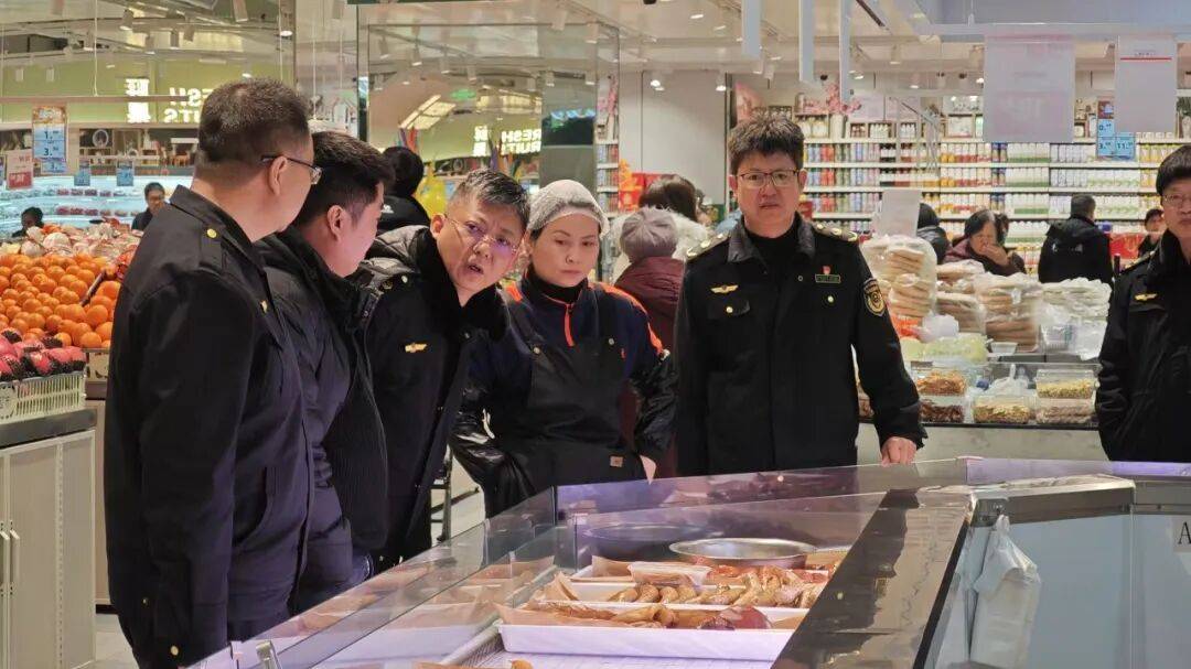 春节前夜,辖区各大商超、农贸市场人流如织。法律人员穿行于货架取摊位之间,聚焦蒸碗、卤味、预制菜等节令热销品,开展“靶向式”排查。从出产日期到储存前提,从标签标识到索证索票,不放过任何一个细微现患。一纸单据、一枚标签,皆成逃溯之源;严查严管之下,不及格食材无处遁形,流入苍生灶台。