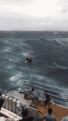 “本来我们正在一个划子舱里躲着,成果一个浪过来,把我们所有人都间接打湿,随后我们跑到其他处所躲了起来。”。